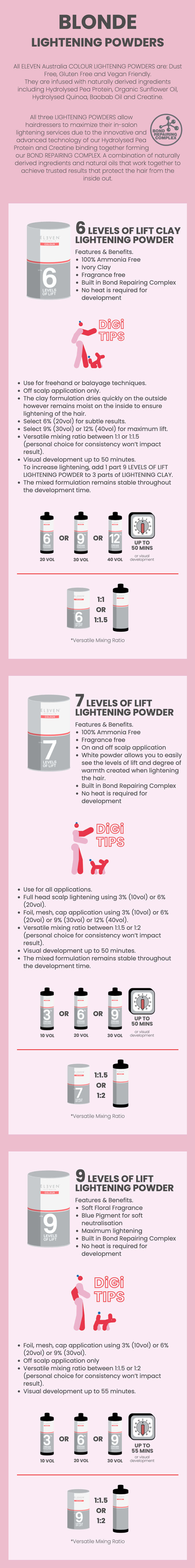 Using scales add equal parts (1:1) of the selected ELEVEN Australia COLOUR shade and the ELEVEN Australia COLOUR Activator 2% (7vol) or 4% (13vol).
